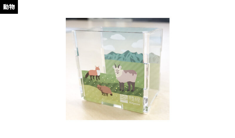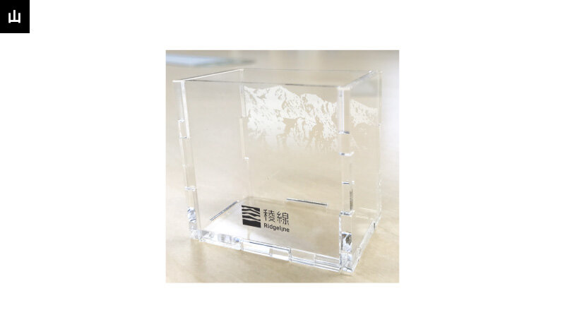 透明感のあるアクリルに稜線アートを閉じ込めた立体ボックス。
